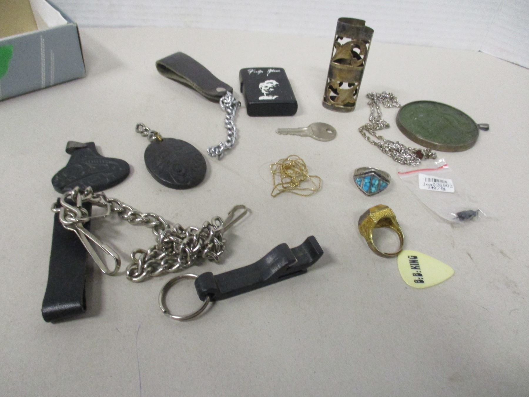 SEIZURE: BOX C/W CHAINS, RINGS, LIGHTER COVER, ETC
