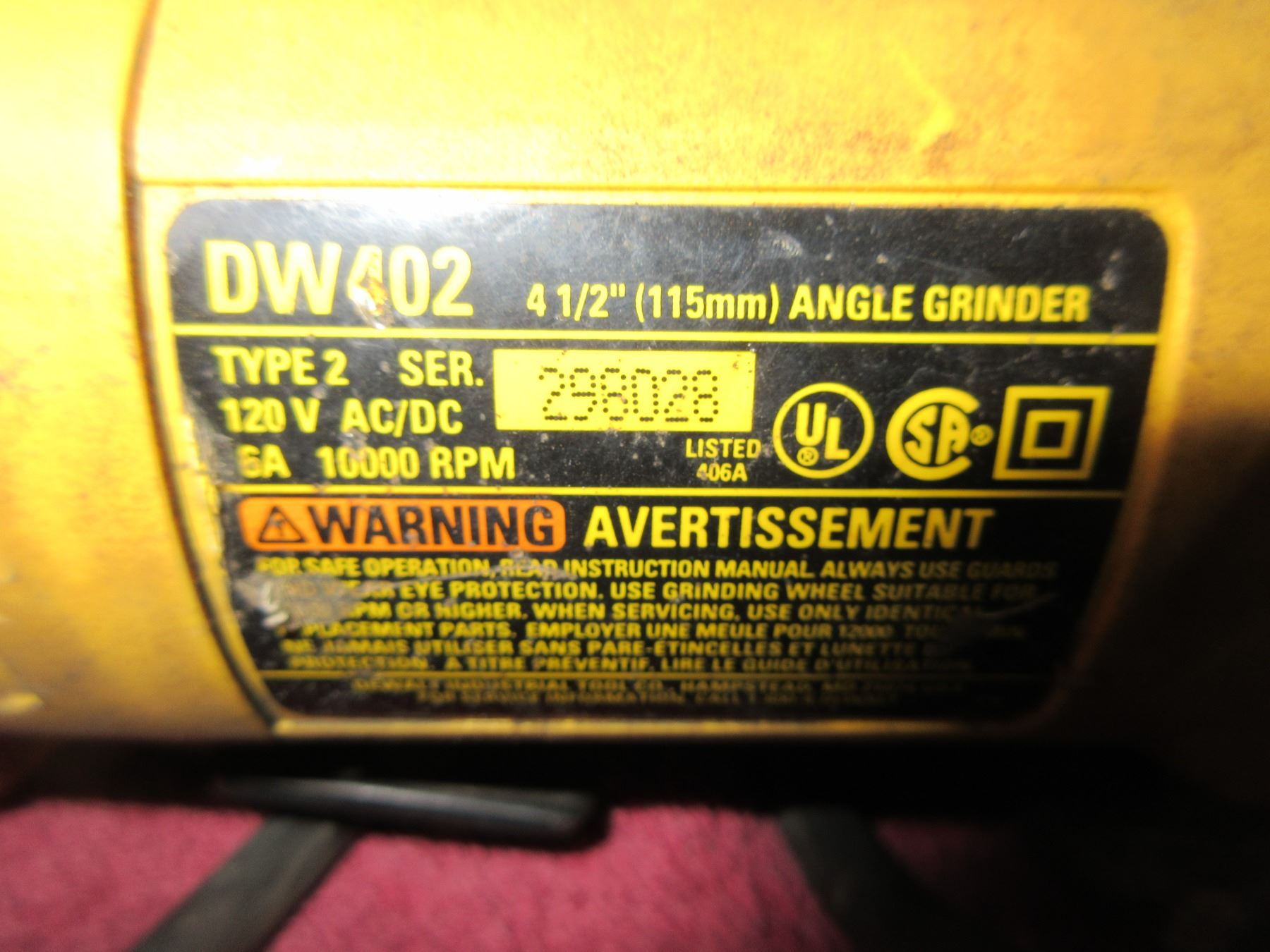 SEIZURE: DEWALT 4.5" ANGLE GRINDER (WORKING)