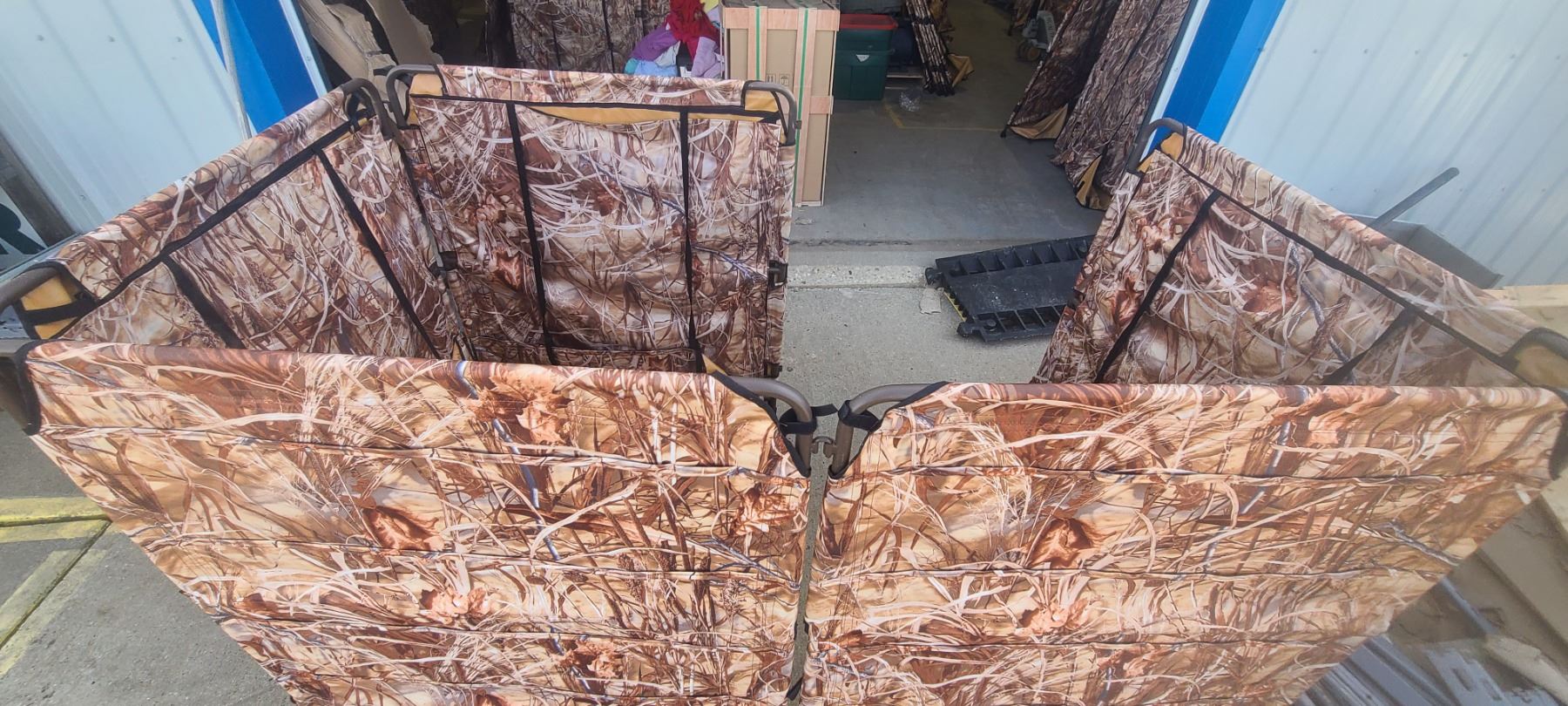SET OF FIVE DUCK/GOOSE HUNTING BLINDS PANELS - ADJUSTABLE IN HEIGHT - COMES WITH STAKES - HAS BRUSH POCKETS - INDIVIDUAL PANELS SIZE 42" X 48" SINGLE PANELS THAT CAN BE ADDED TO.