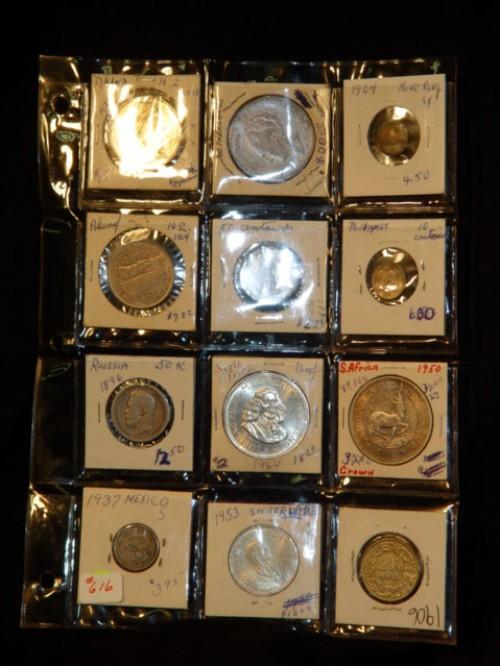 SHEET OF 12 SILVER WORLD CROWNS AND COINS