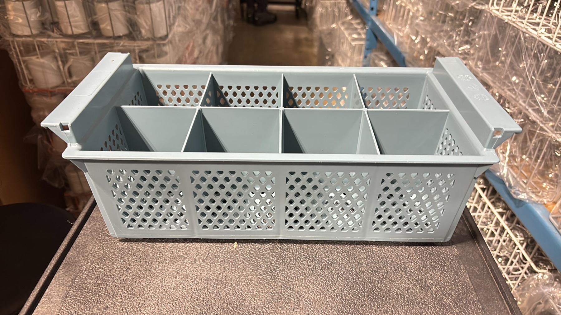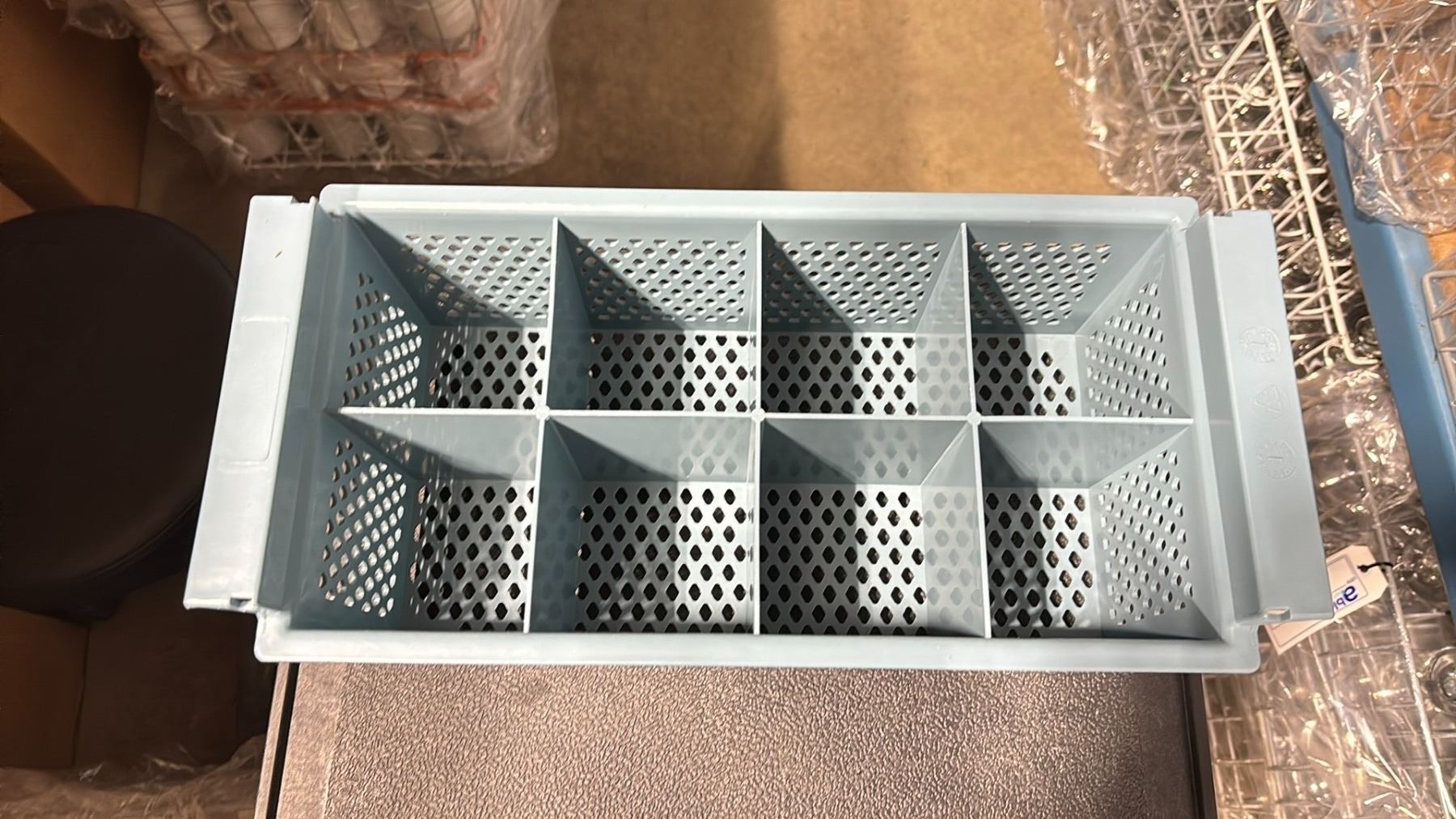 SHELF OF COMMERCIAL RESTAURANT DISHWASHER CUTLERY RACKS