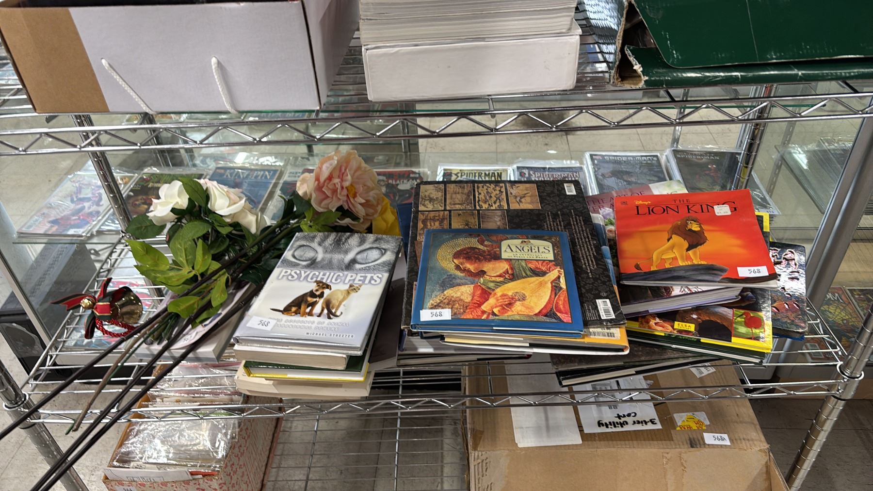SHELF OF FAUX FLOWER & ASSORTED BOOKS ( MOST ARE REFERENCE BOOKS)
