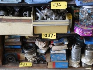 SHELF OF VARIOUS NUTS, BOLTS & BEARINGS