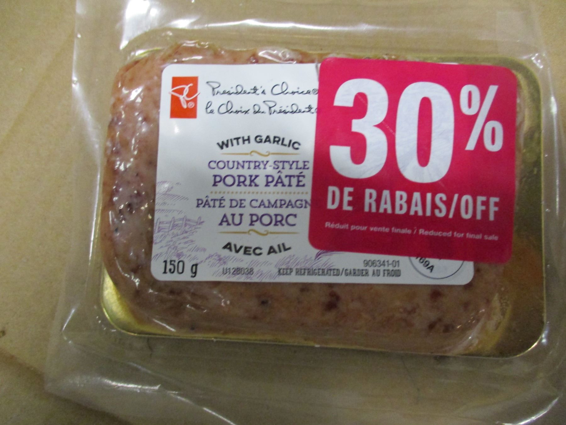 SHELF PULLS (AS IS): PORK PATE C/W GARLIC (150G)