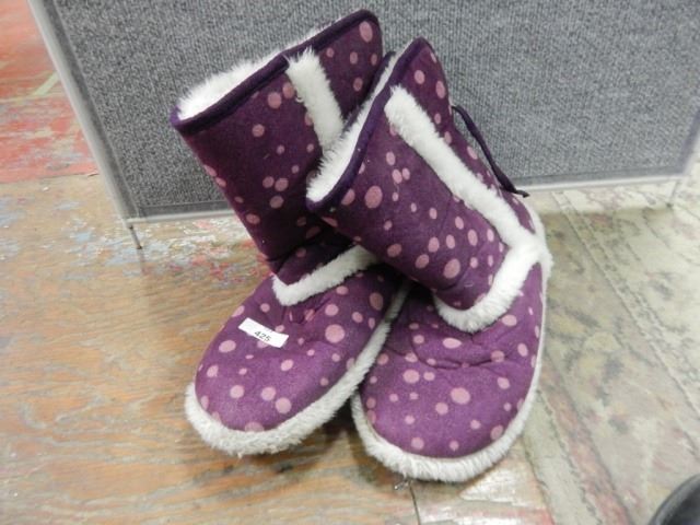 SHOES/SLIPPERS - WOMANS - (NO BRAND TAG) - SLIPPERS - PURPLE AND PINK DOT - SIZE 9.5
