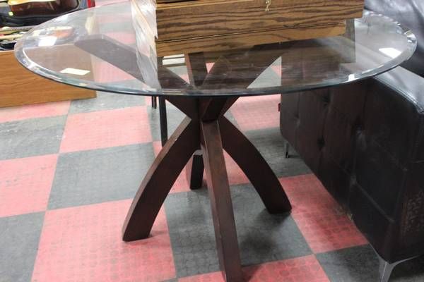 SHOWHOME ROUND GLASSTOP WOOD BASE TABLE