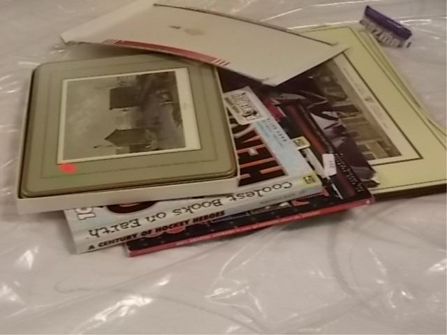 SILVER PLATE POT RESTS & 2 SETS OF RETRO PLACEMATES AND BOOKS