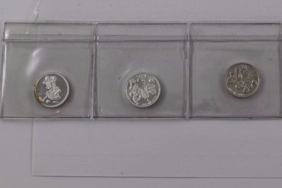 SILVER ROUND - 5 X 1 GRAM .999 STERLING SILVER - DISNEY COLLECTION - MICKEY GOLFING & 2 OTHERS