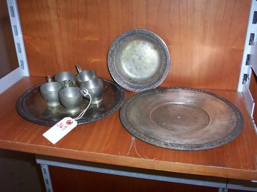 2 PLATES, ONE REED AND BARTON DISH & 5 CUPS