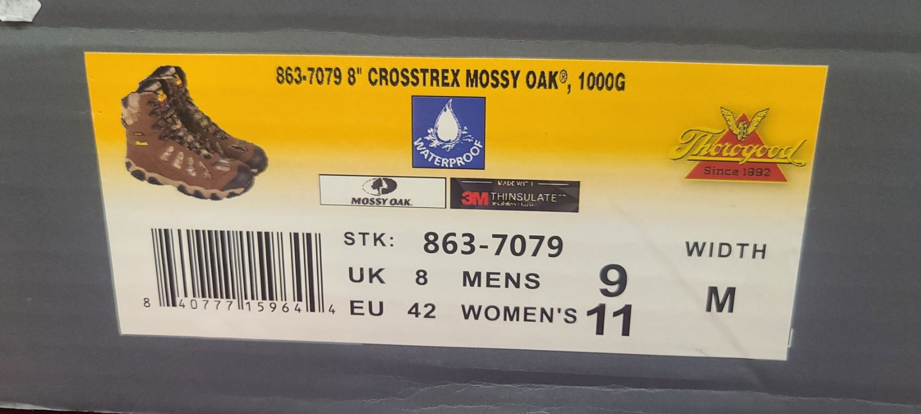 SIZE 9M 11W MEDIUM THOROGOOD 8" CROSSTREX 1000G MOSSY OAK