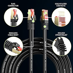 Sjorks Cat6 Outdoor/Indoor Ethernet Cable 15ft.Waterproof, Direct Burial, In-Ground, UV Jacket, POE, Network, Internet, Cat 6, Cat6 Cable - 15ft