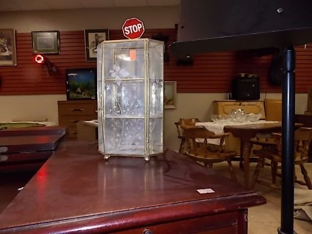 SMALL BRASS & GLASS DISPLAY STAND