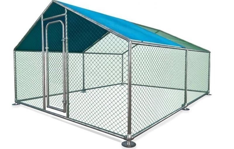 COVER IN BOX: UN-ASSEMBLED GALVANIZED METAL CHICKEN COOP, GALVANIZED DOOR WITH LOCK, WIRE MESH FOR FULLY ENCLOSED ROOF AND SIDES, WATERPROOF ROOF COVER, ASSEMBLY INSTRUCTIONS. MATERIAL: GALVANIZED TUBE CHICKEN COOP WITH CLOTHWATERPROOF COVER CAGE SIZE 2M X 3M X 2M DIMENSIONS: 6.5 X 9.8 X 6.4 FEET WIRE MESH: COATED 1MM WIRE, SIZE APPROX. 35X35MM 32MM DIAMETER GALVANIZED STEEL TUBECOLOR: SILVER CHICKEN RUN WITH COVER (BLUE OR PURPLE DEPENDING ON STOCK)
