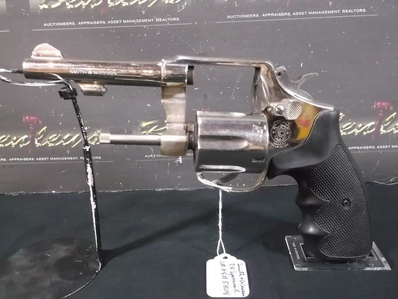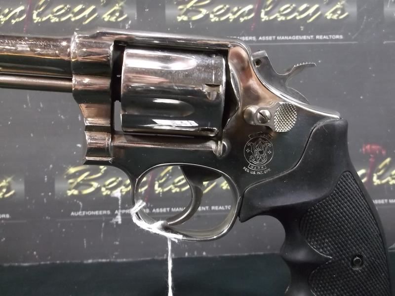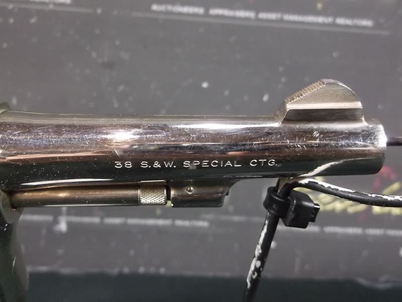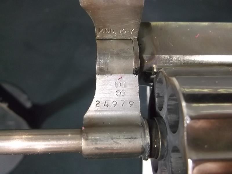 SMITH & WESSON 38 SPECIAL 10-7, HOLSTER, NICKEL, USA, S/N: 24979 (print sequence:) 14 - 1057 - 1058