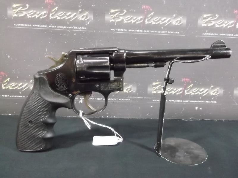 SMITH & WESSON 38 SPECIAL POLICE REVOLVER, HOLSTER USA, S/N: 91597 (print sequence:) 15 - 1053 - 105