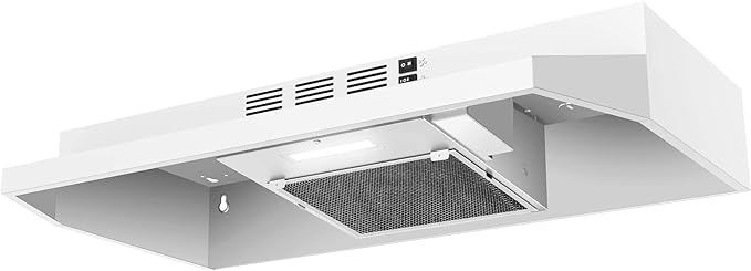- SNDOAS 30 inch Under Cabinet Range Hood, Ducted/Ductless Convertible Kitchen Hood, Stainless Steel Vent Hood with LED Light,Under Cabinet Hood with 2 Speed Exhaust Fan,White