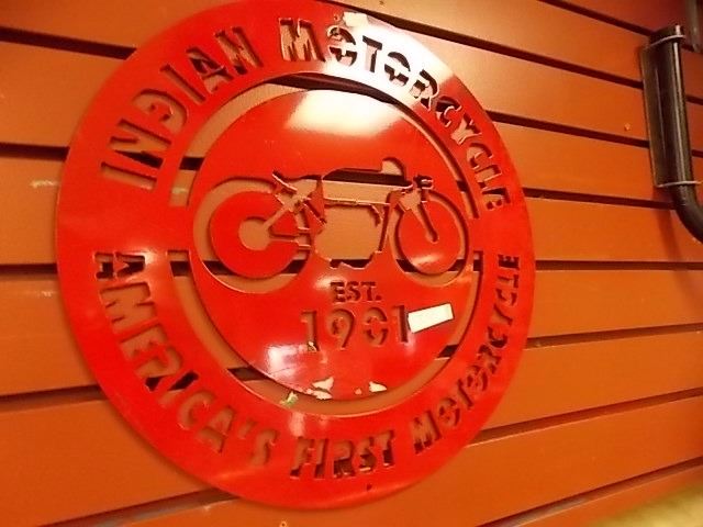 SOLID METAL MOTORCYCLE SIGN - RED INDIANS - ROUND