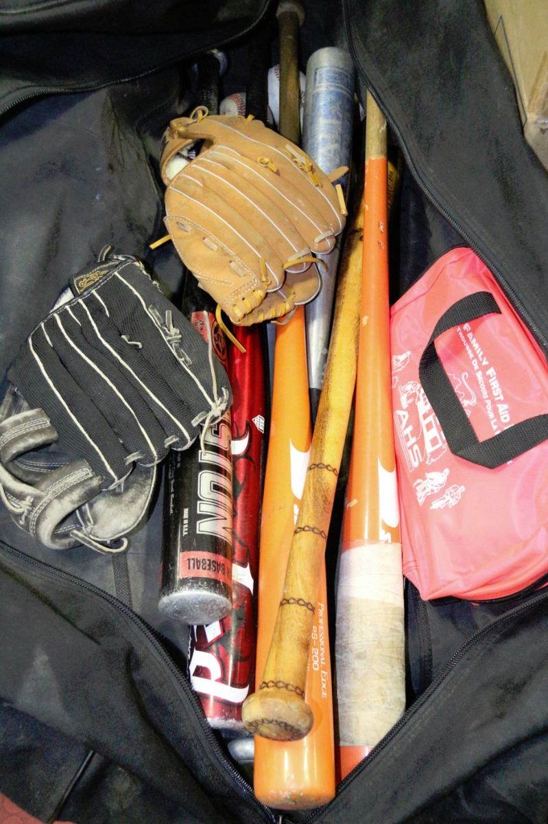 SPORTS BAG W/7 BASEBALL BATS, 7 BALLS, 2 GLOVES