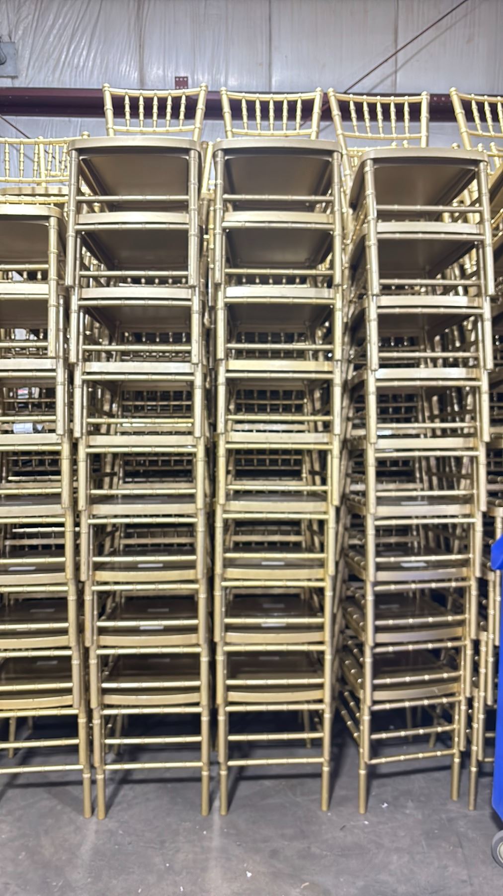 STACK OF 9 GOLD RESIN CHIAVARI EVENT 18" CHAIRS