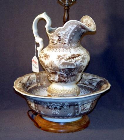 STAFFORDSHIRE PITCHER AND BOWL MADE INTO LAMP