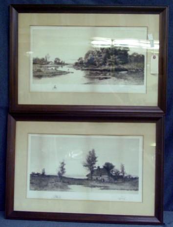 STEEL ENGRAVINGS, COUNTRY SCENES; ONE SIGNED FIELD- 2 X THE MONEY