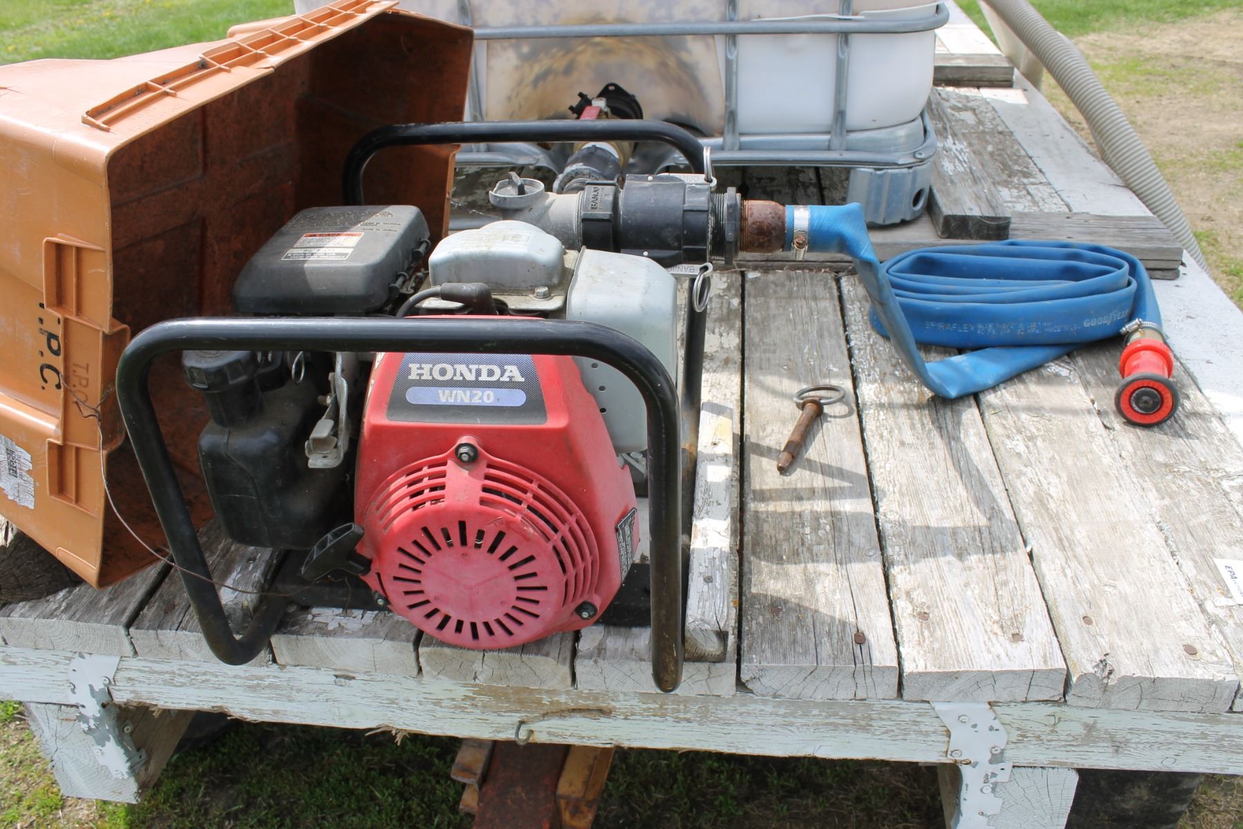 C/W 2 POLY TANKS; HONDA WATER PUMP; HOSES (SELLS COMPLETE); FARM USE ONLY; SN #NOT VISIBLE