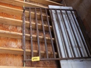 STEEL GATE, APPROX 8' FLAT IRON, BARREL OF SCRAP METAL, TIN, FERTILIZER