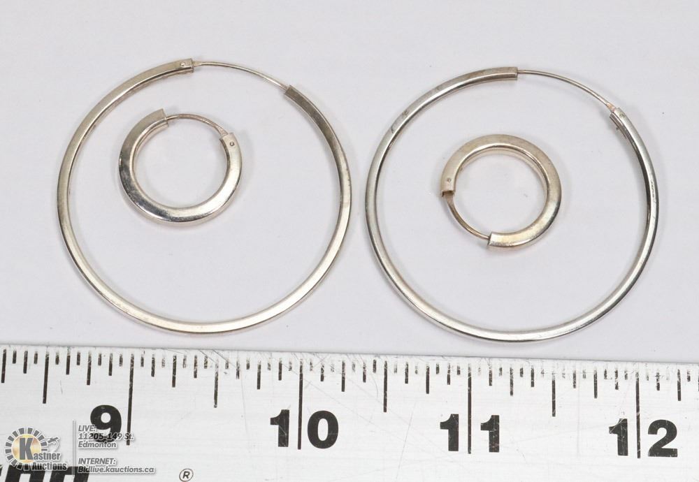 STERLING SILVER HOOP EARRINGS - 2 PAIRS, 2 SIZES.