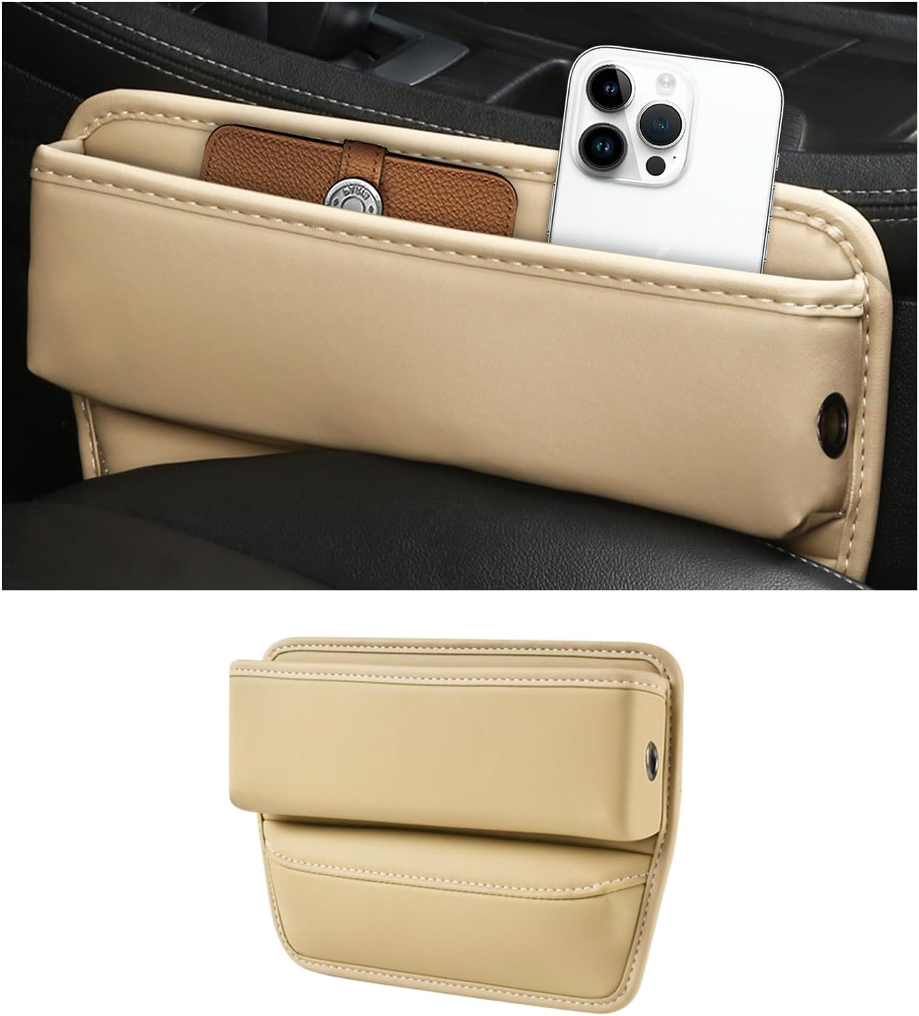 SUVNIE CAR SEAT GAP FILLER ORGANIZER, MULTIFUNCTIONAL LEATHER SEAT GAP STORAGE BOX, ADJUSTABLE FRONT SEAT SIDE POCKET ORGANIZER FOR PHONES GLASSES KEYS CARDS, CAR ACCESSORIES (BEIGE)