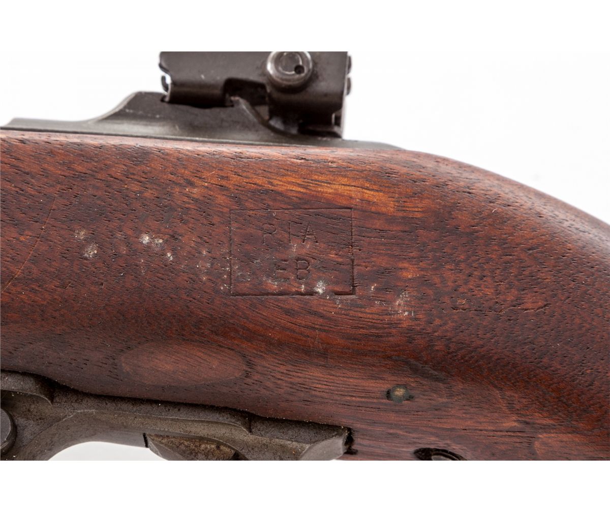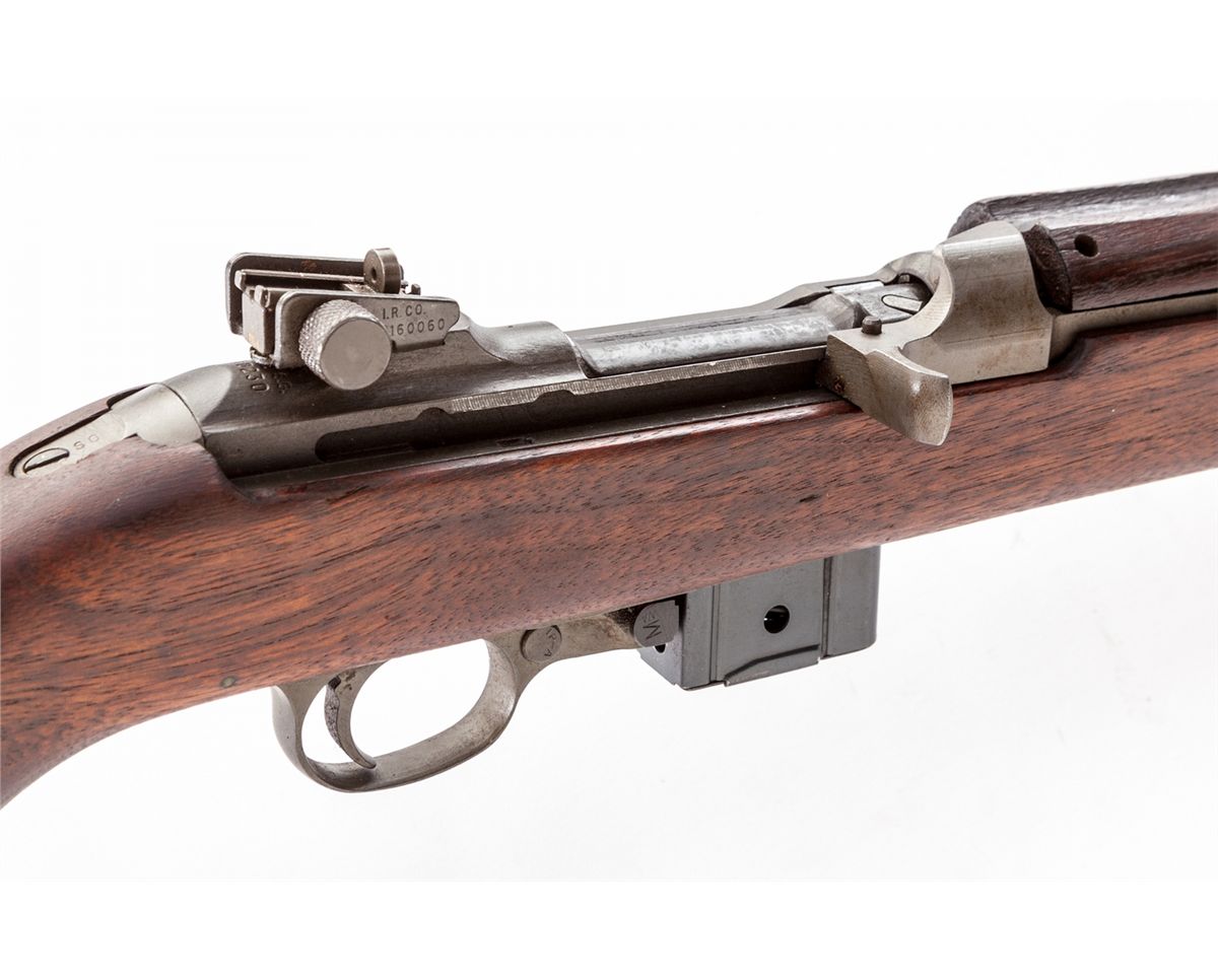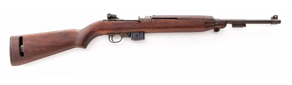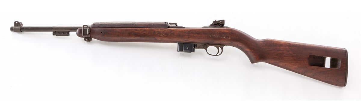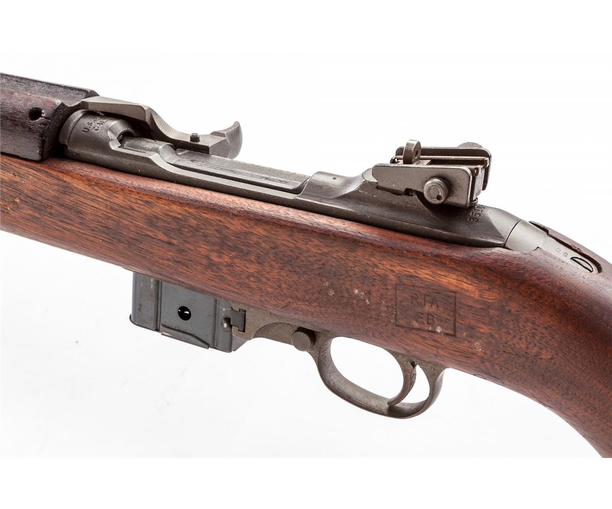 U.S. M1 Semi-Automatic Carbine, by Saginaw, #3510230, .30 Carb. cal., 18'' Inland barrel dated 3-43, parkerized finish, RIA cartouched stock, dual rivet handguard, flat blue bolt, push-button safety, Type 3 stamped rear sight, and bayonet lug, with one mag. Condition is excellent, as lightly arsenal refurbished. Stock with crisp cartouches and appearing unsanded. Action is good, bore is mirror bright. Est.: $750-$1,000. (Modern)
