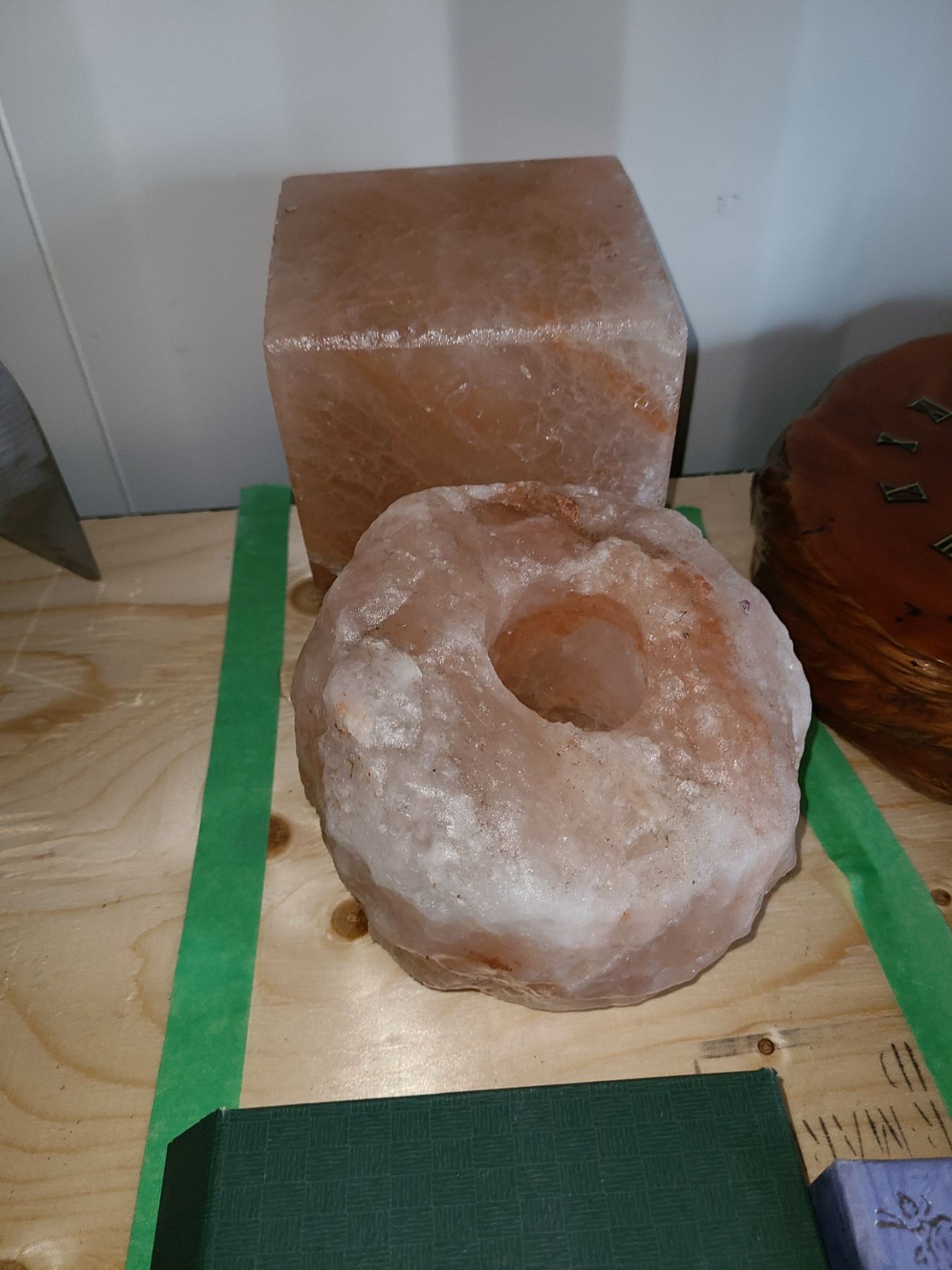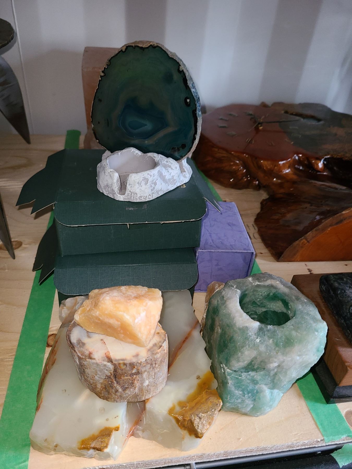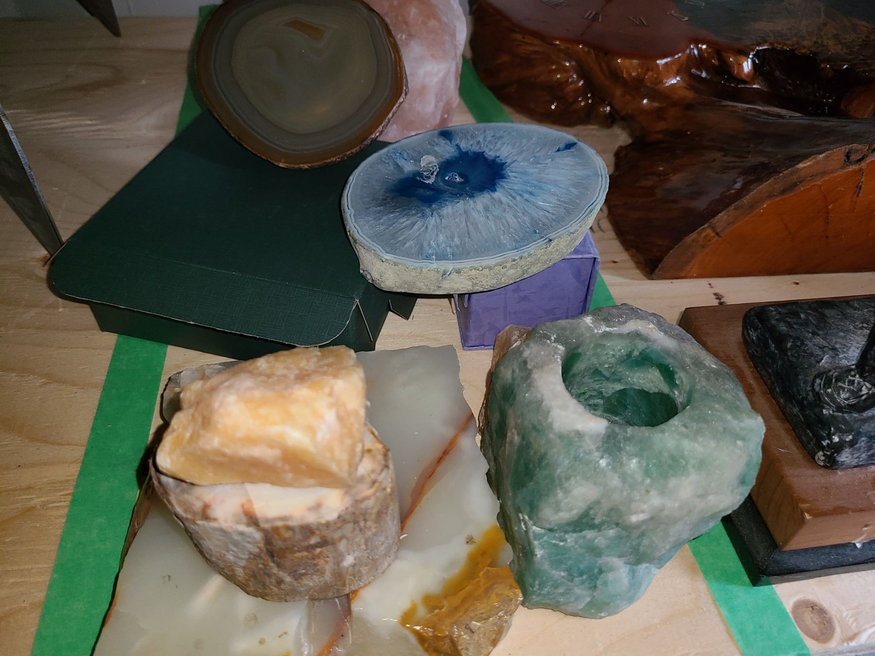 Lot includes 2 Himalayan salt crystals, small agates, and more. Bring packing material. Pickup 9 am.