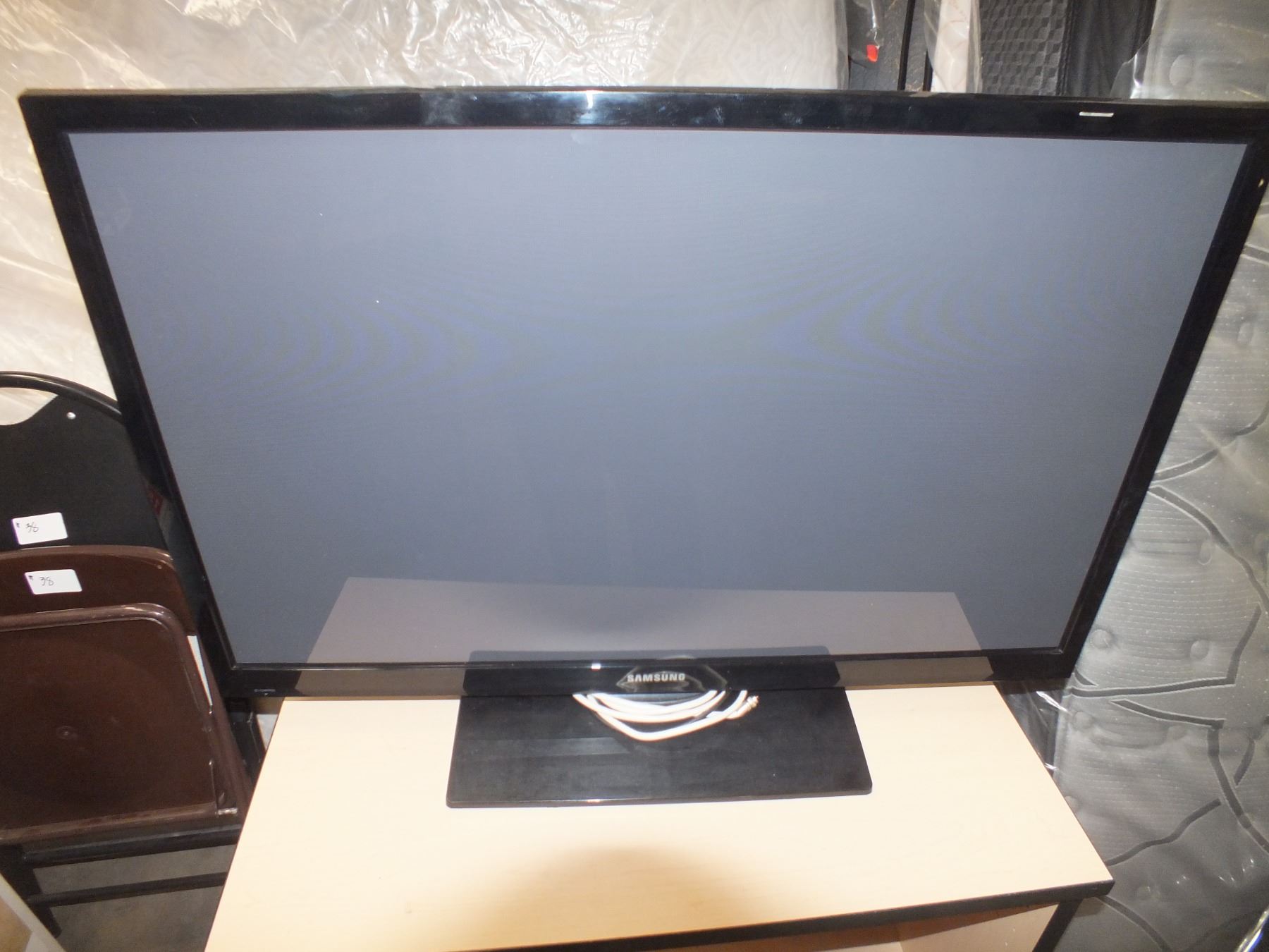 2012 Plasma Samsung 43" TV no remote w/ brown stand on wheels in working condition...used