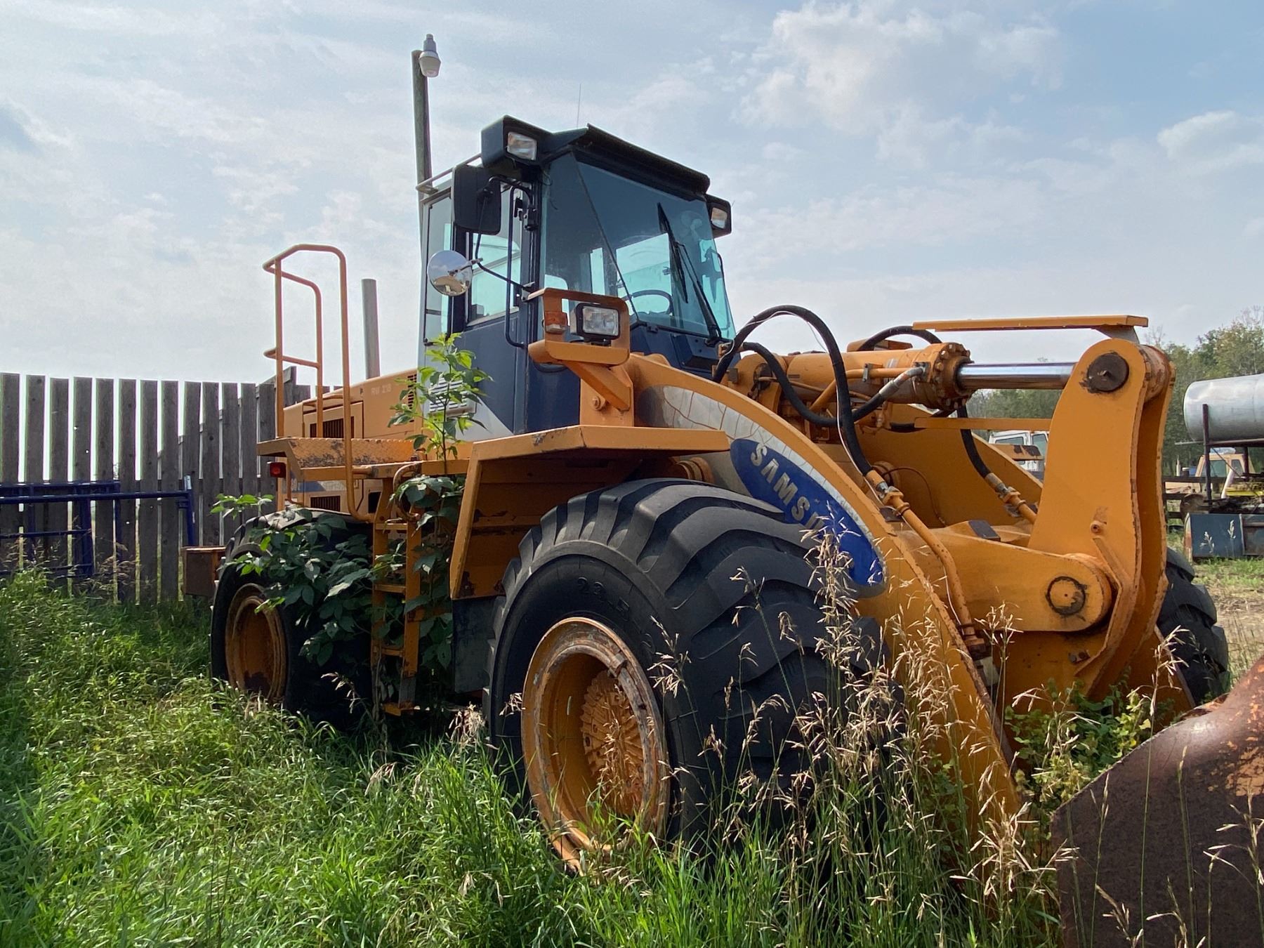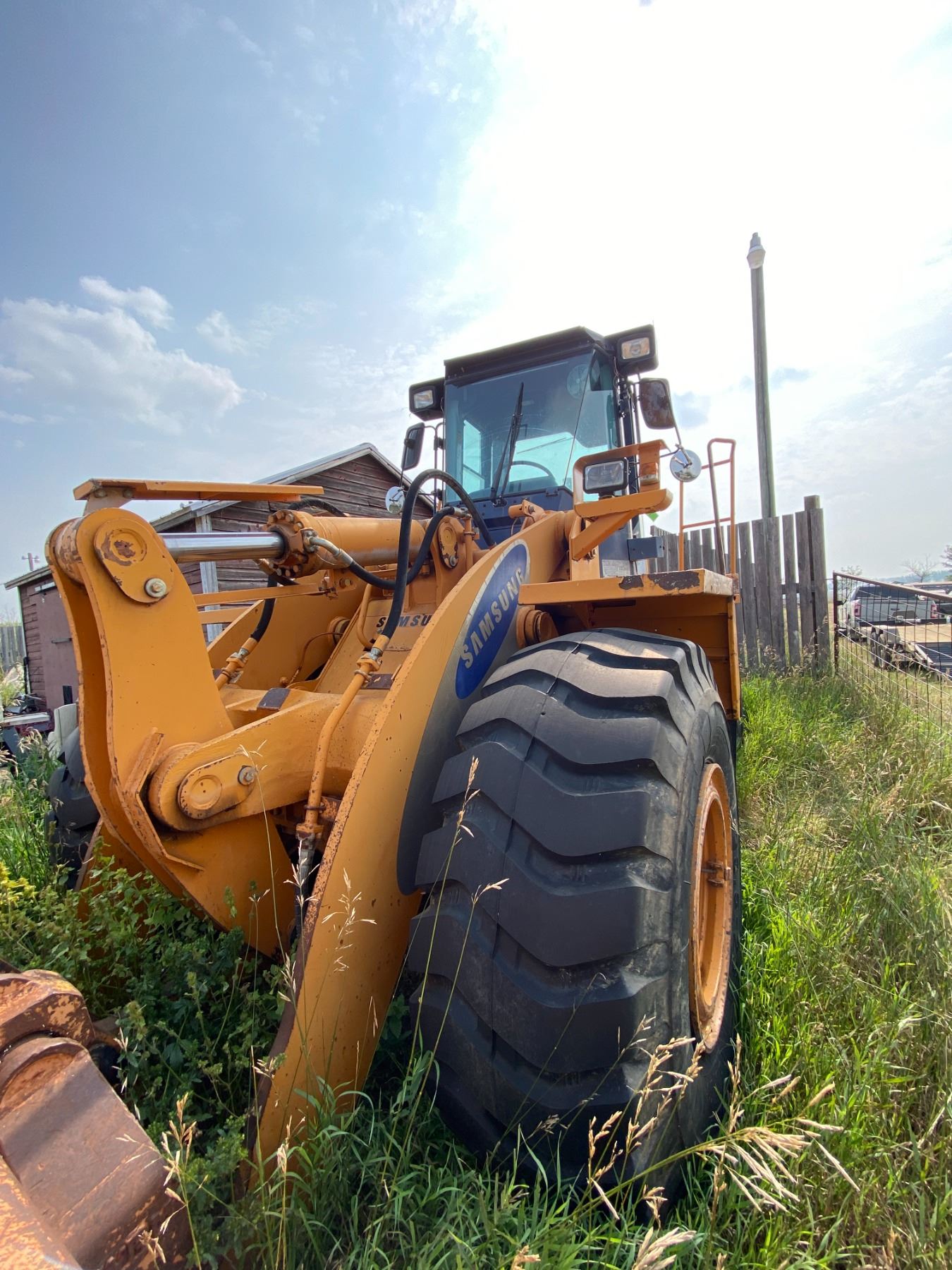 Samsung SL180-2 Loader, #9604-328, 16,228 hrs c/w Bucket, 23.5x25 Tires. Seems to run nice but does not move