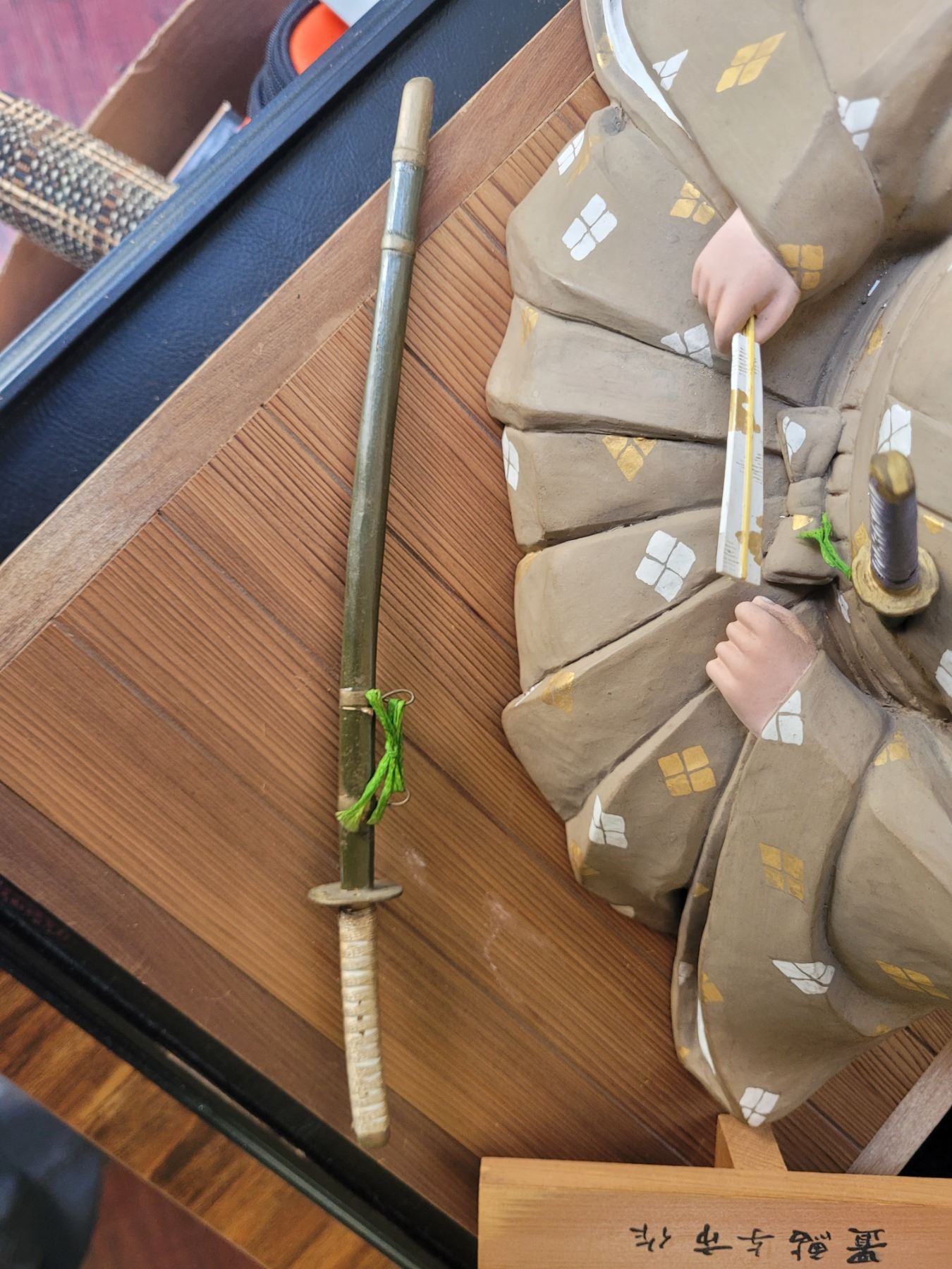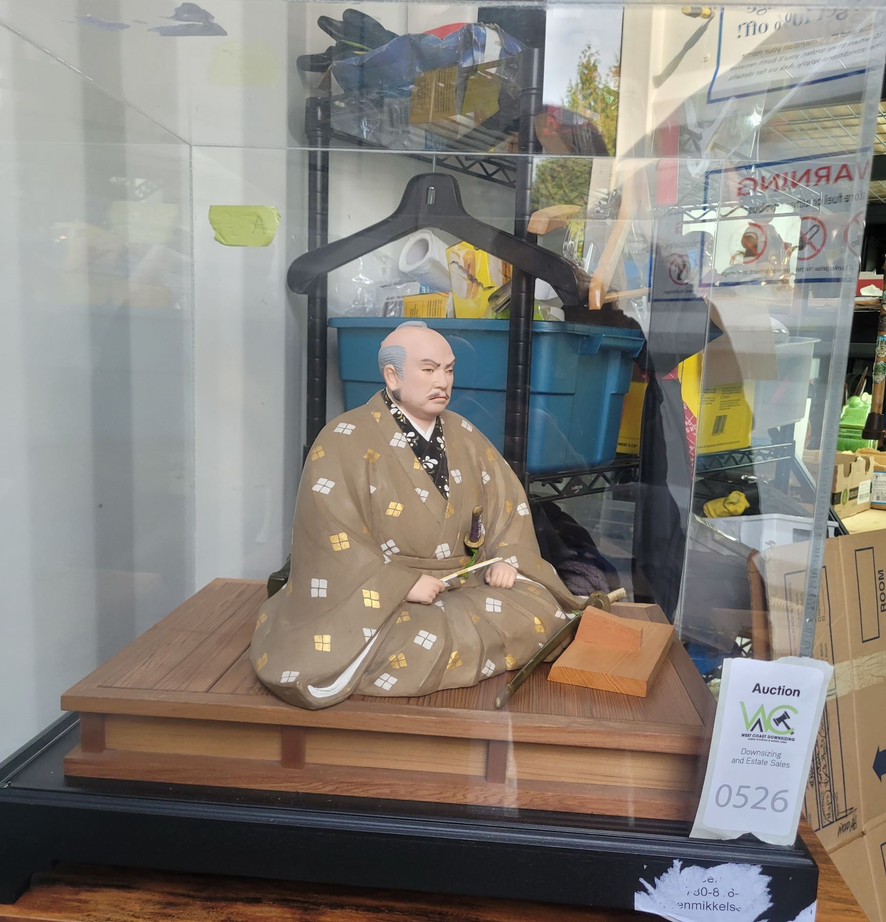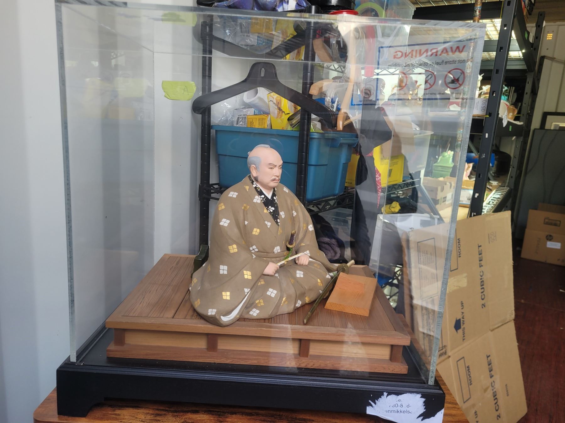 Display case 20x14x20. Samurai and platform 16x11x12. Pickup at 10 am