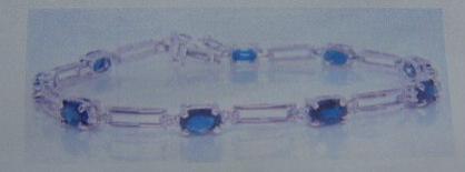 Sapphire and Diamond Bracelet 14 K white gold- Sapphires are oval, faceted approx. 5.00 carats translucent and slightly dark blue; diamonds are full cut approx. 0.27 carats- estimated retail replacement cost $3,570 (12)