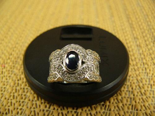 Sapphire and diamond lady's ring, 14K white gold, sapphire, oval, faceted, approx. .75 carats, semi-transparent, medium dark blue, diamonds full cut, approx. .50 carats, SI2 clarity, I color, estimated retail replacement cost $1225.00 (12)