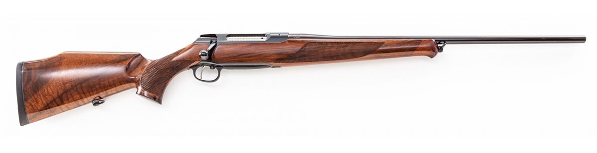 Sauer Model S202 Supreme Bolt Action Rifle, #N19549, .30-06 cal., 24'' barrel, blue finish, checkered European stock, with sling swivels. In original box with factory scope mounts. Condition is excellent, appearing new and unfired. Est.: $1,800-$2,400. (Modern)