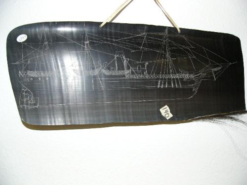 Scrimshawed Baleen of Old Sailing Ship 18" x 17.5" wide 639F (2)