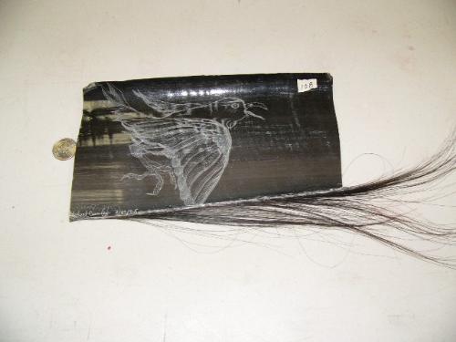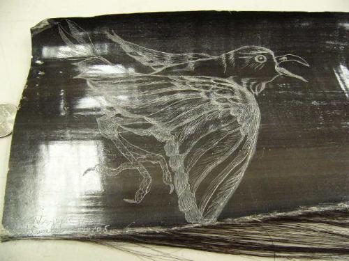 Scrimshawed baleen of raven by Robert Crumley 10" long (2)