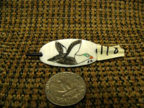 Scrimshawed ivory hairpin with flying puffin by Fred Mayac (2)
