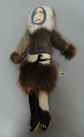 Seal skin doll with bone face by Maria Anariak- 14" tall (2)