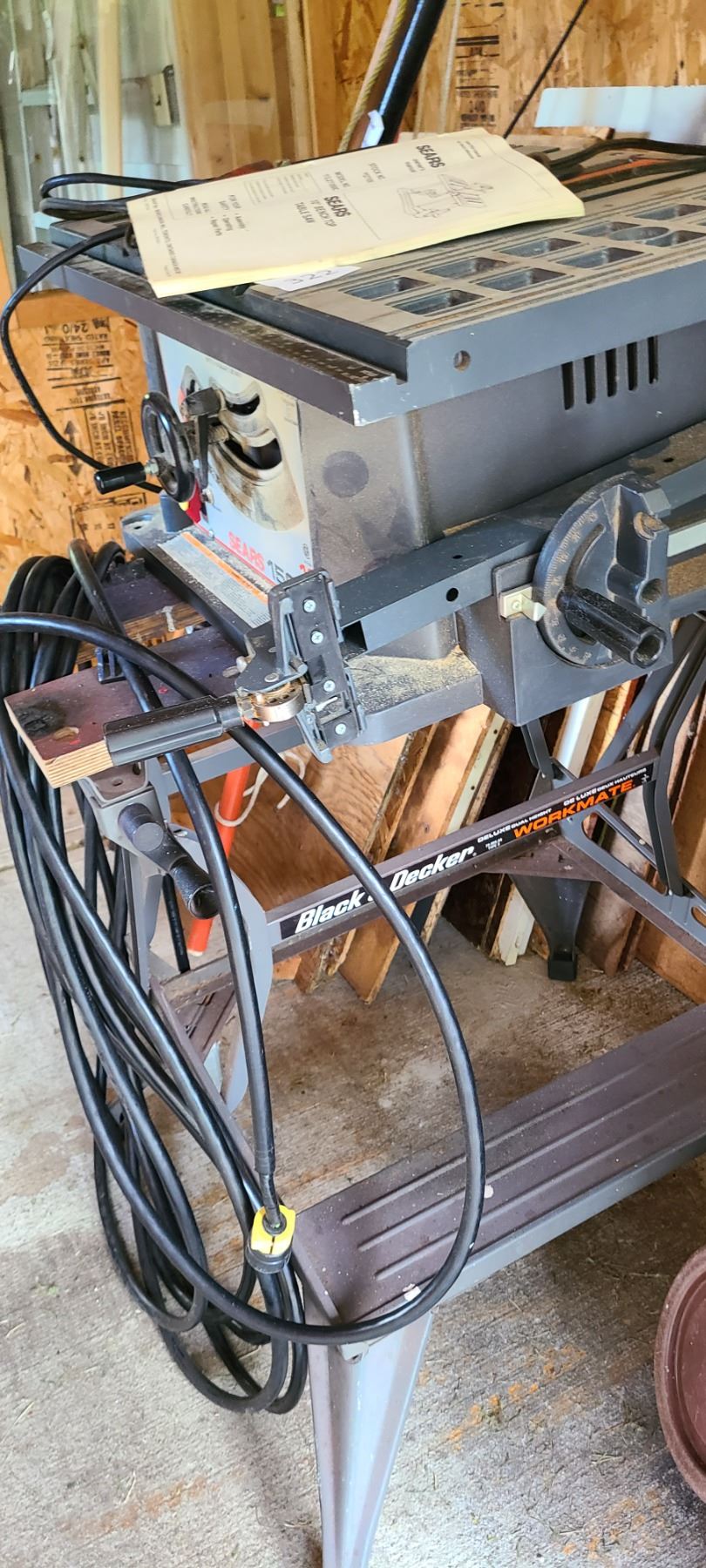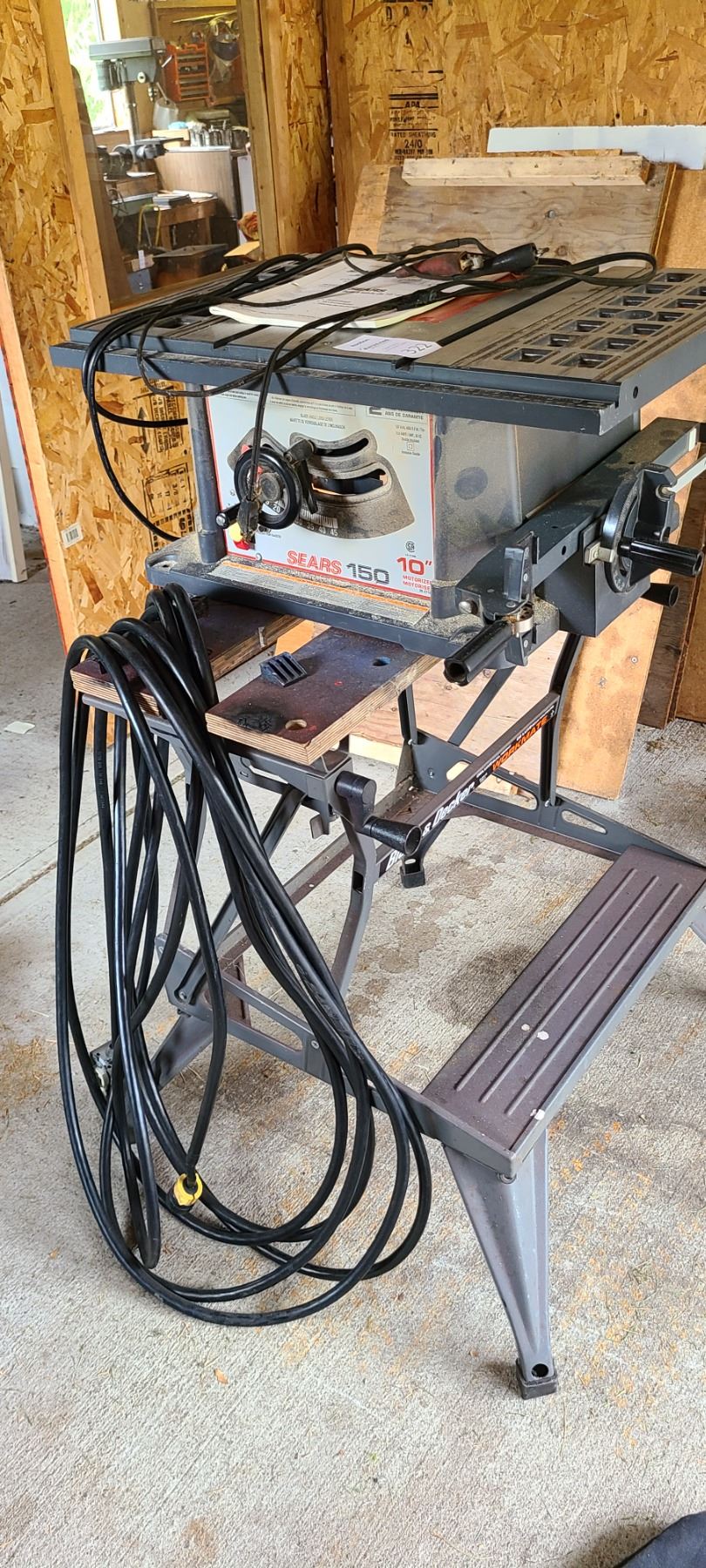 Sears 150 table saw on B& D Workmate table, includes power cable model #113 271050C untested pickup 3 pm