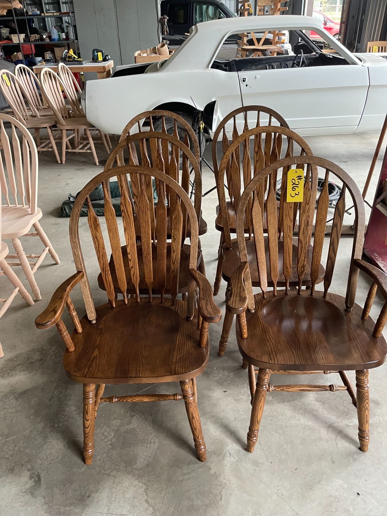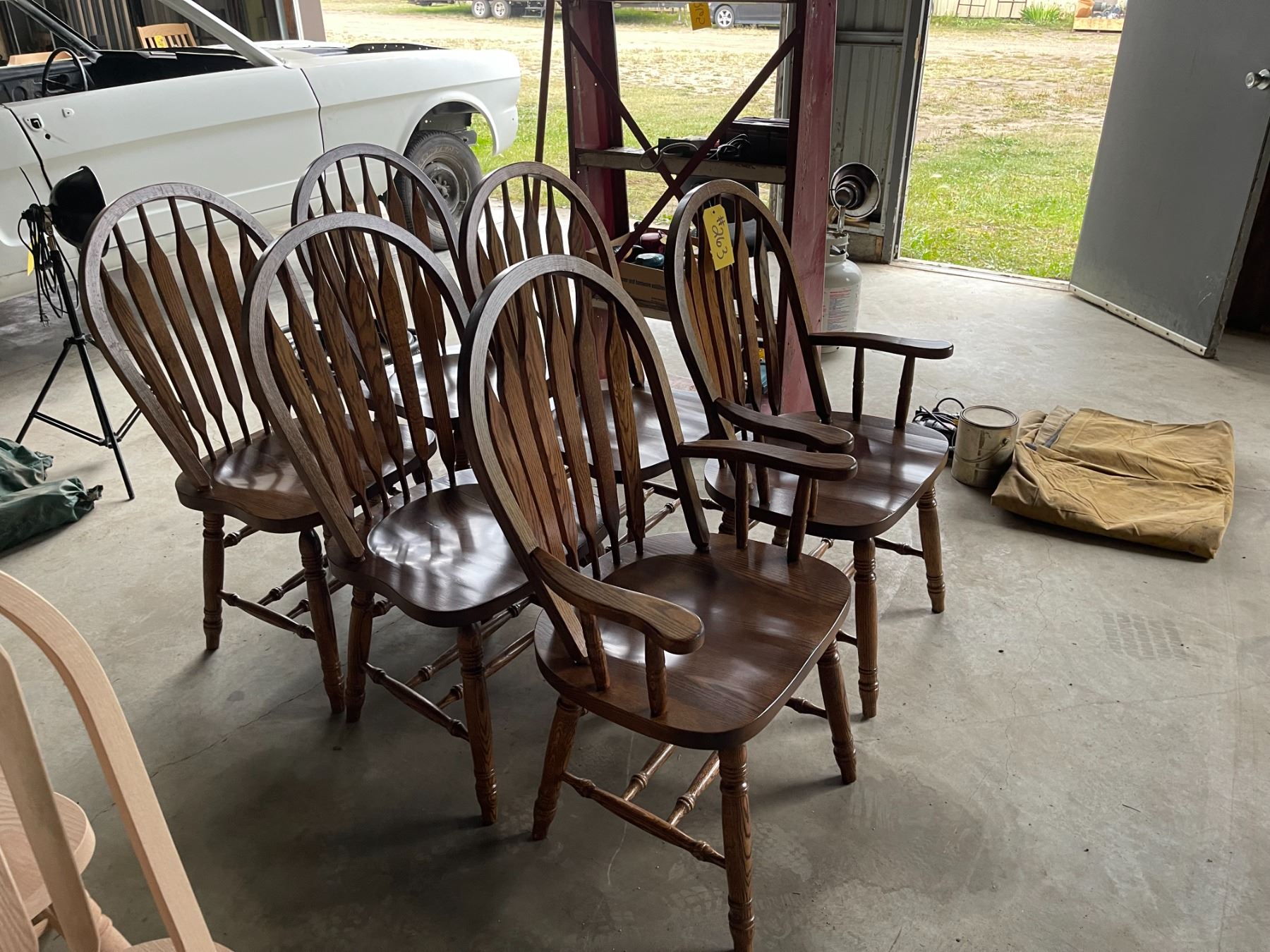 Selling all together- 2 oak arrowback arm chairs, 4 oak arrowback side chairs, black walnut finish