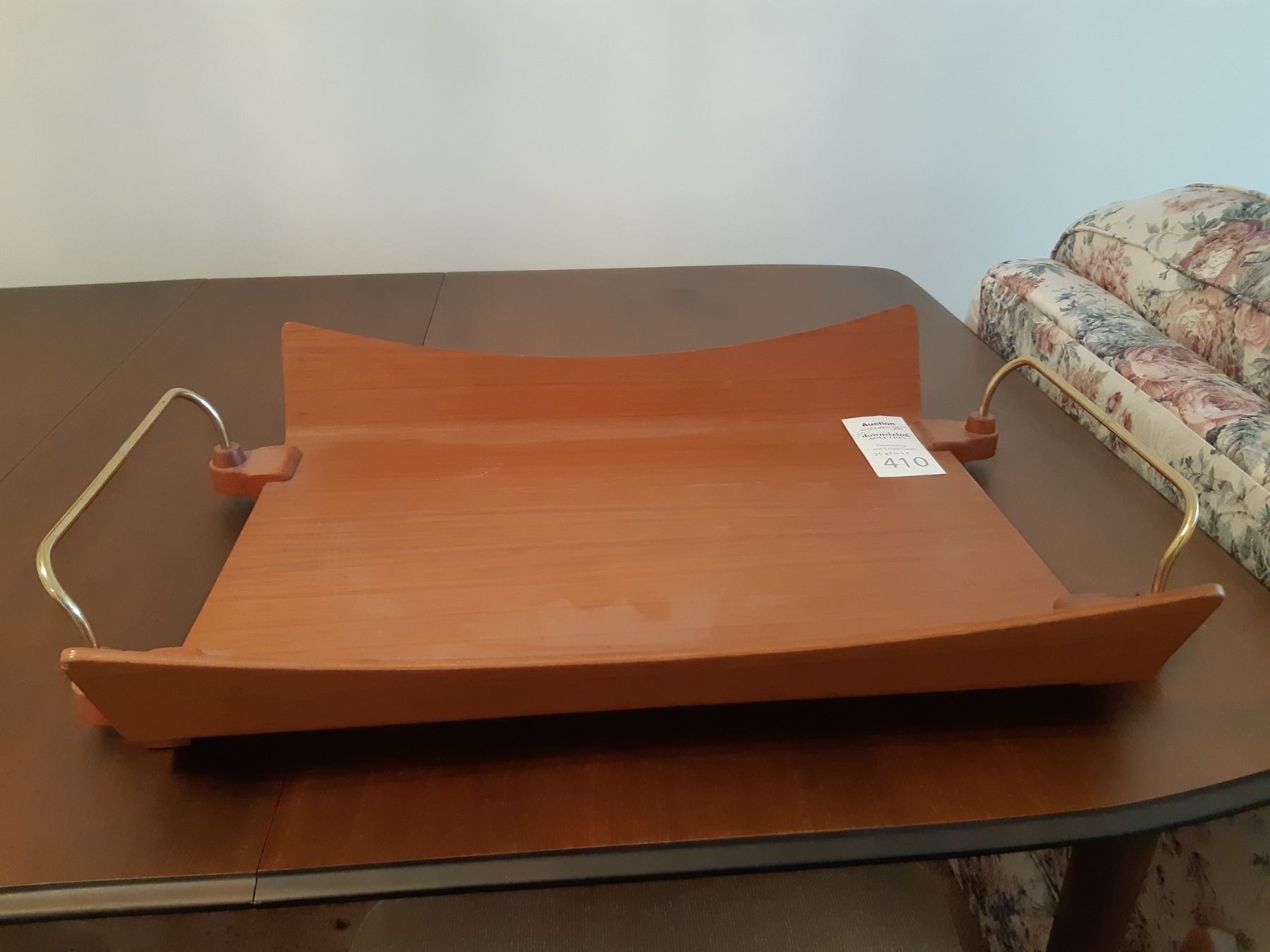 Wood and brass trim serving tray 25x17x4.5. Pick up at 9:30