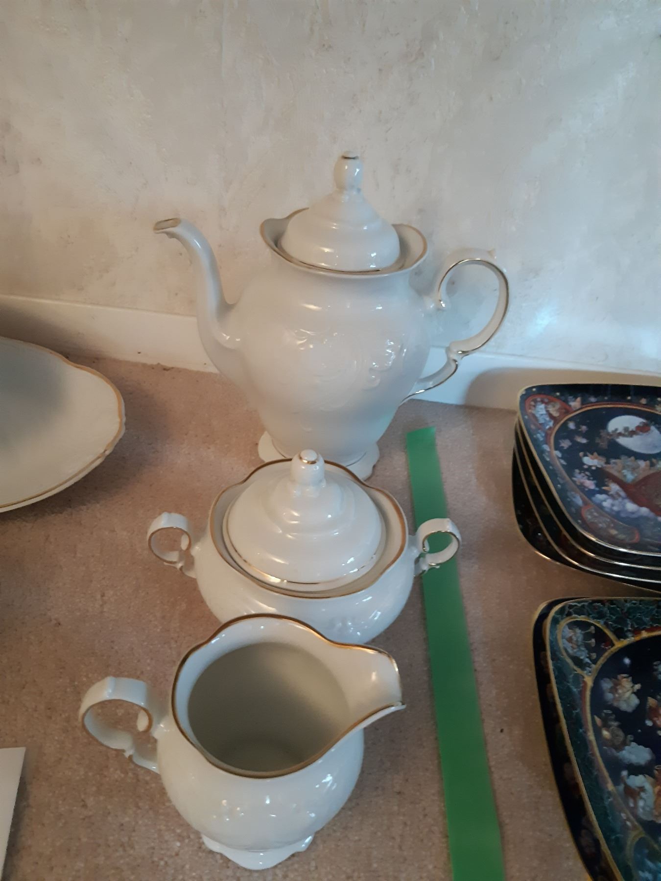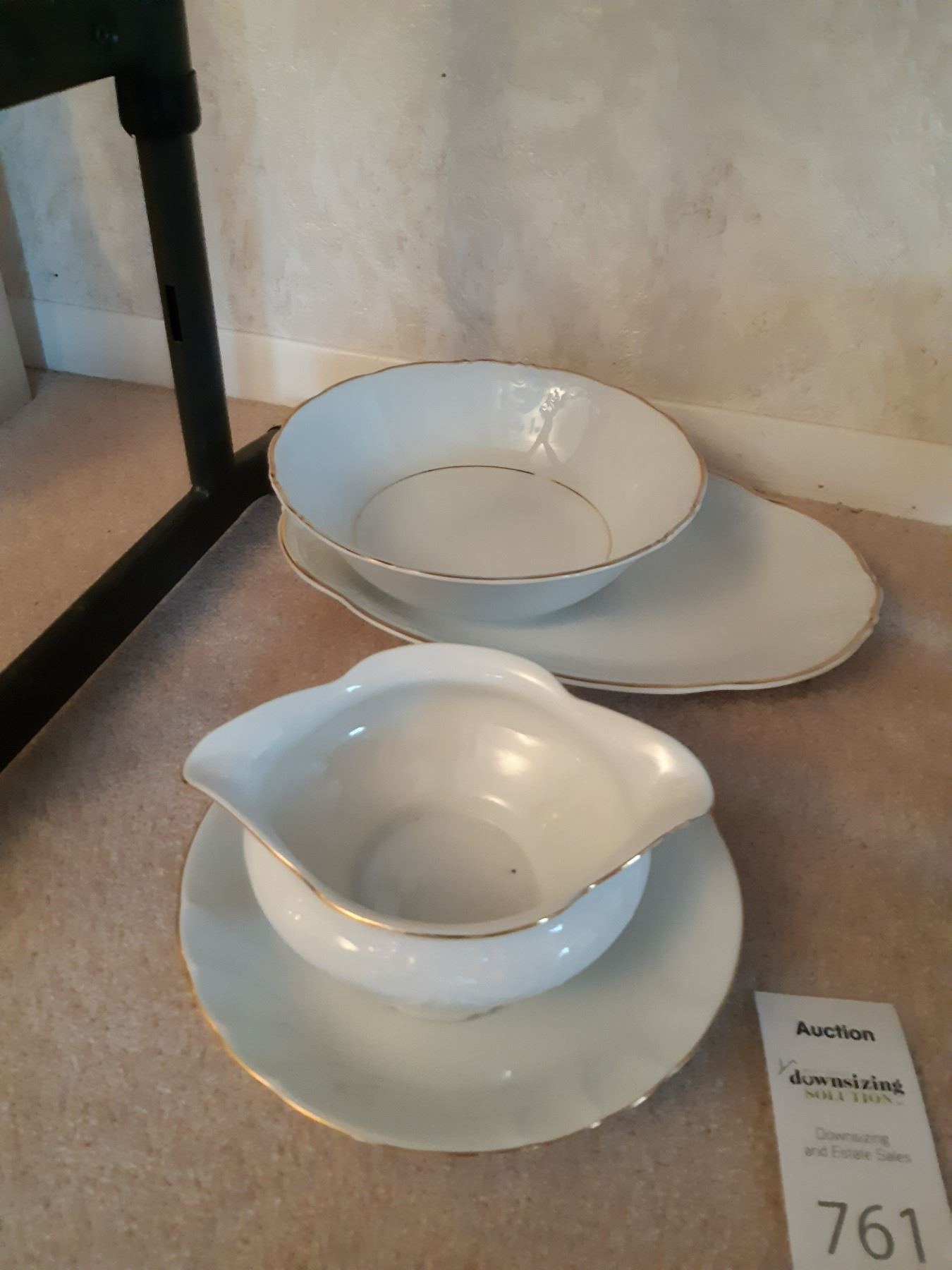Royal Kent China gravy bowl and saucer and vegetable bowl with platter. Bring packing supplies. Pickup 9 am.