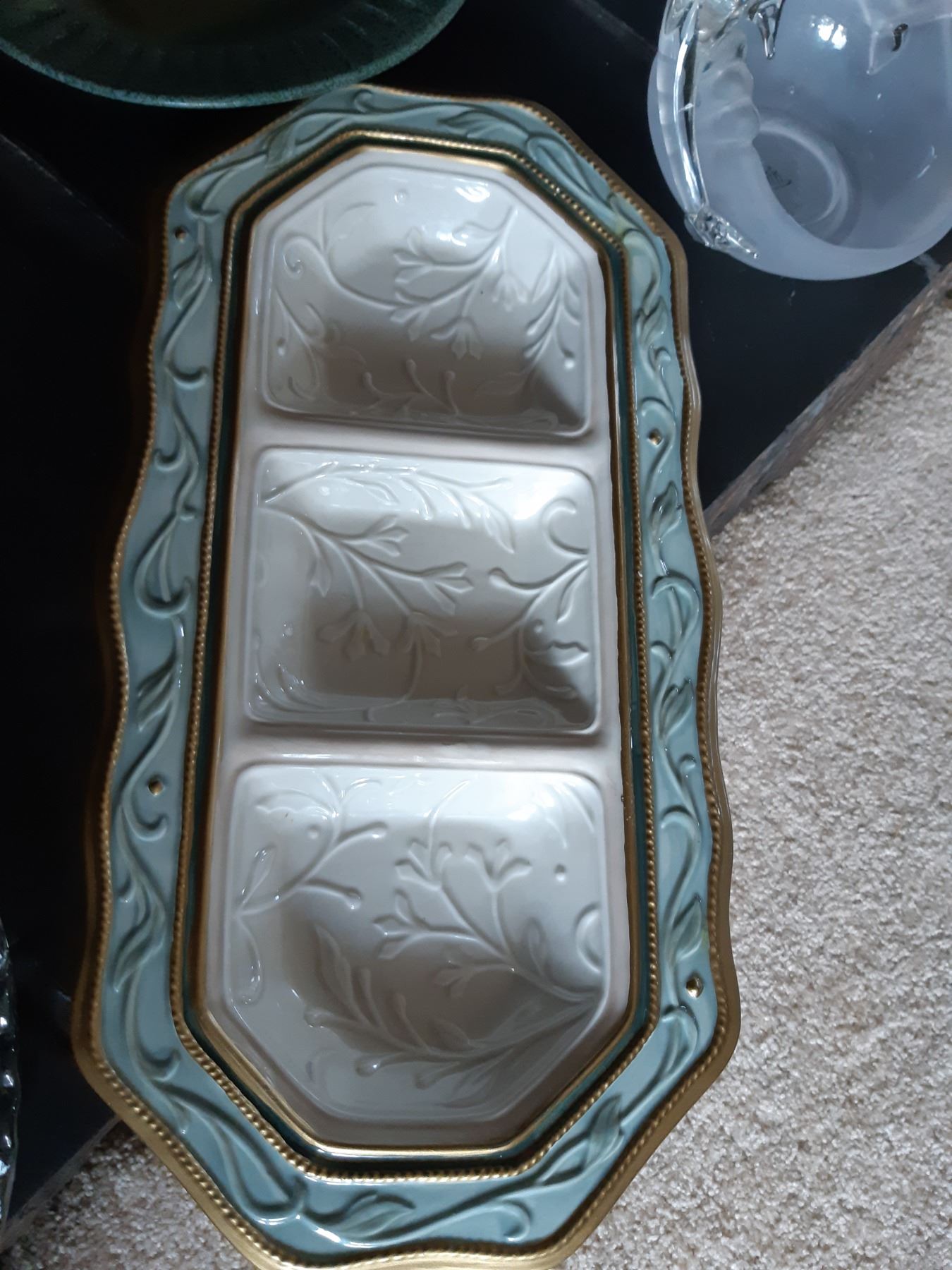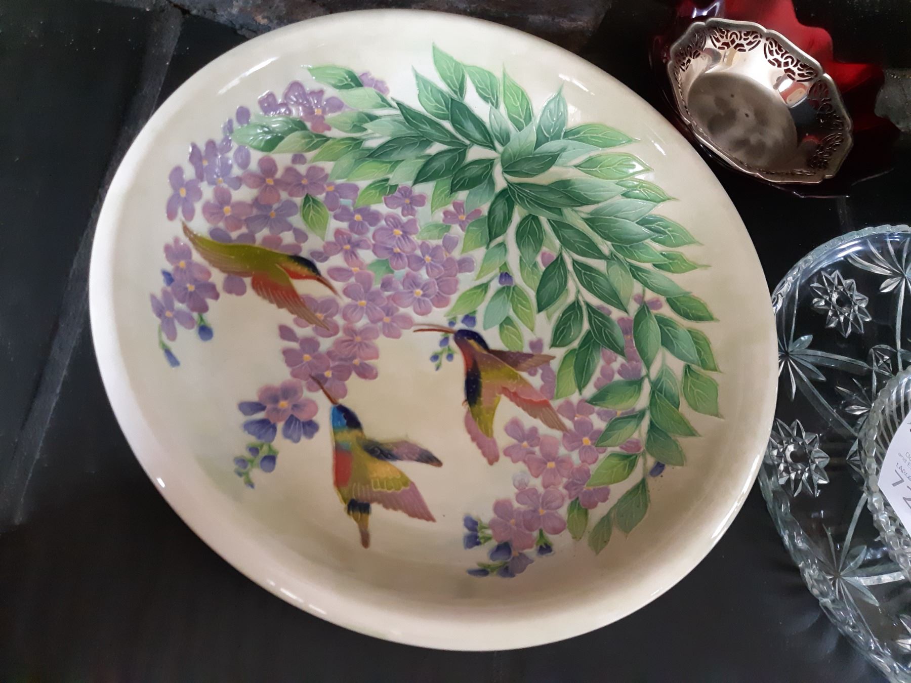 Linda Ward Humming bird dish 14", Fitz & Floyd rectangular dish, pottery and more. Bring packing supplies and pickup at 9 am