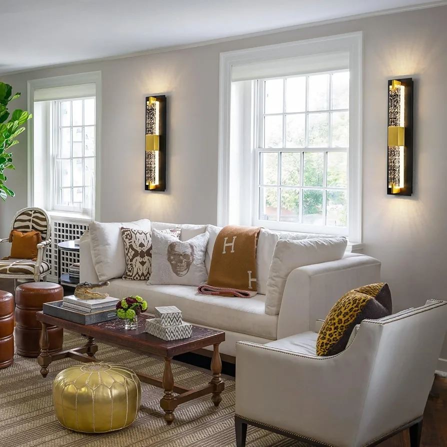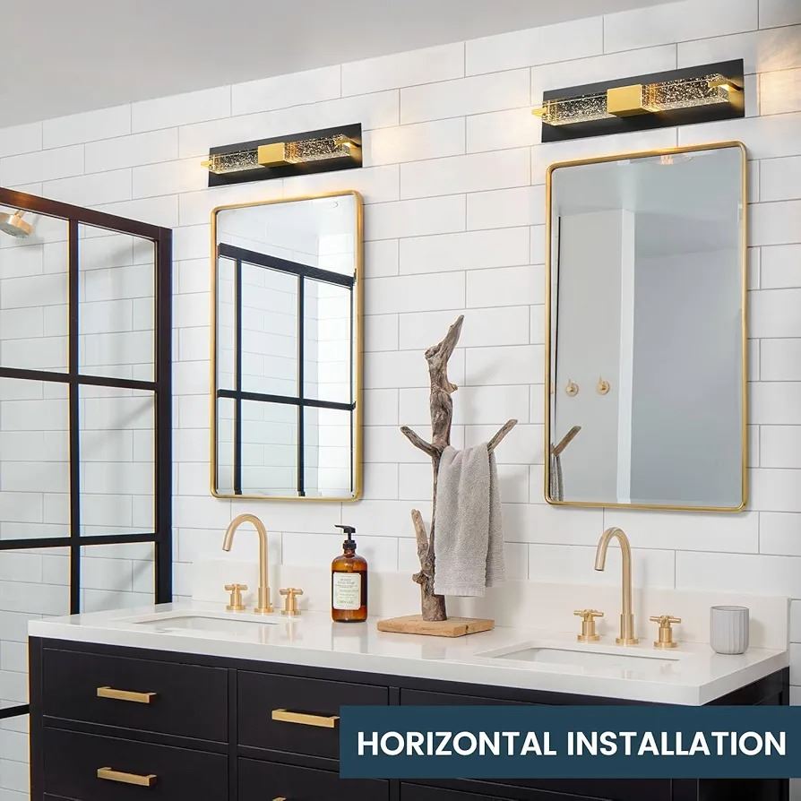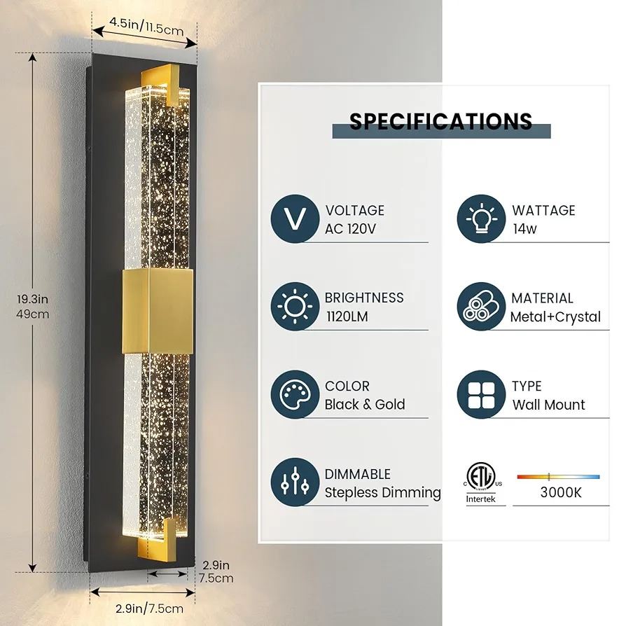 Set of 2 new modern black and gold wall sconces wall lighting 3000K with crystal bubble glass shade (new in boxes)