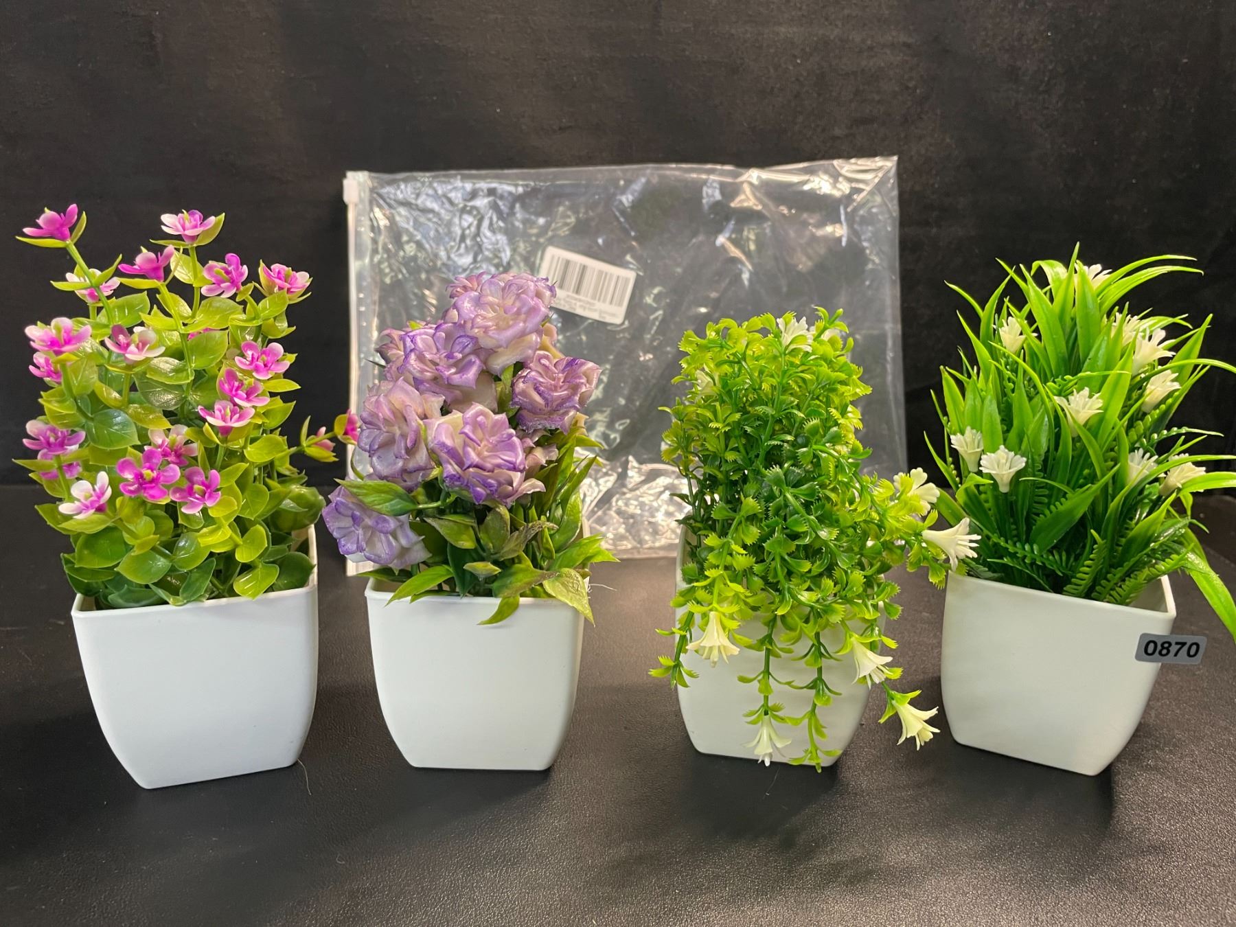 Set of 4 Small Artificial Table Plants/Flowers for Decor - New