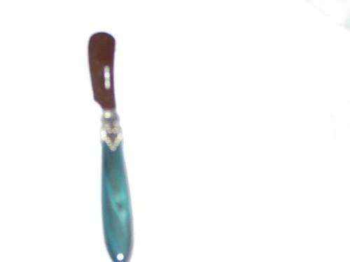 Set of 8 Napoleon spreaders w/green pearlized handles & stainless blades in original box