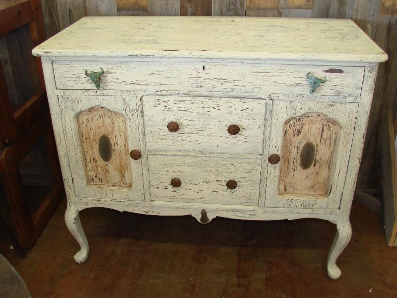 Shabby Chic dresser w/Longhorn & Tx. Star drawer pulls